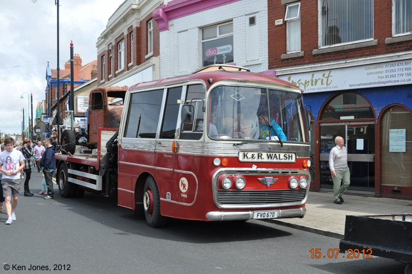 Another former coach put to use as a transporter is Plaxton Panorama bodied Reliance FVO 67D. Nicely restored in the livery of K&R Walsh, it was pictured by Ken Jones at Fleetwood during a Tram Sunday event in 2012. |