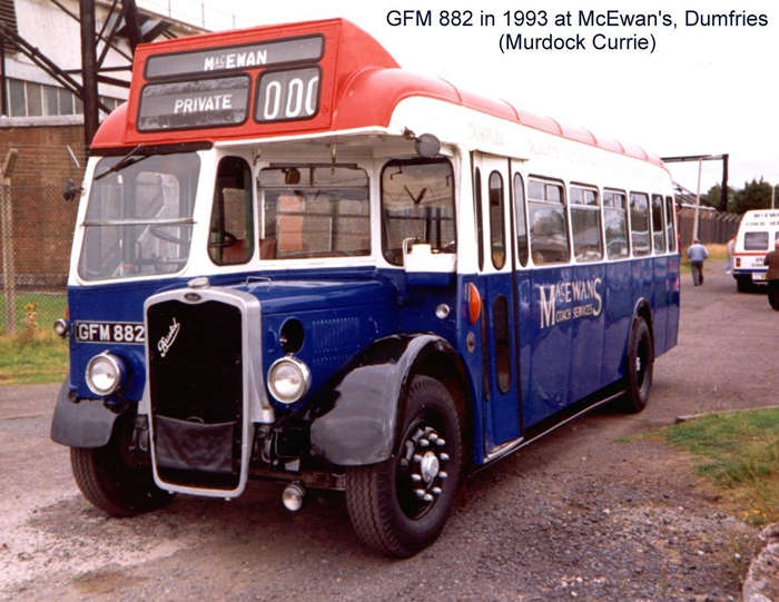 So what's a Bristol L doing on an AEC website? Because it has an AEC engine of course! GFM882 is one of a batch of AEC engined Bristol Ls new to Crosville, and was photographed with MacEwans of Dumfries in 1993. Photo by Murdock Currie. |