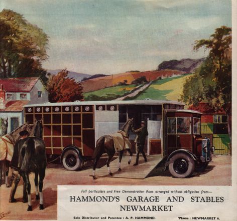 'Pullman transport for bloodstock' …'from stable to covertside and race course, with safety comfort and speed' was how the Hammond 'Newmarket' horse-box was described to potential customers. And in fact, for some 40 years, the highest in the land chose Hammond vehicles to move their prized race horses, some of the most famous, including Golden Miller and Brown Jack 'riding Hammond'.