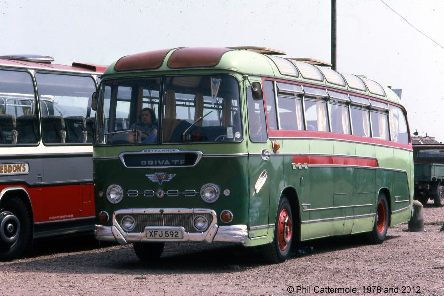 Here's another Reliance being used as a motorhome, but a litttle longer ago. XFJ 592 was a Duple Britannia model new to Greenslades Tours. It was caught in Phil Cattermole's camera lens at the Hastings Old Town coach park in 1978. |