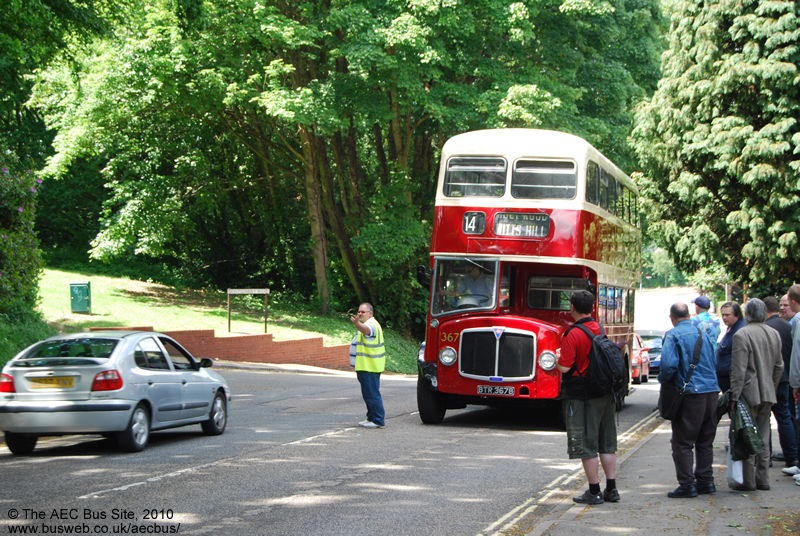 367 advertises its predicament in the time honoured style before the advent of hazard lights. The organisers did a great recovery job with a replacement Atlantean arriving within 15 minutes and 367 itself running again within the hour.