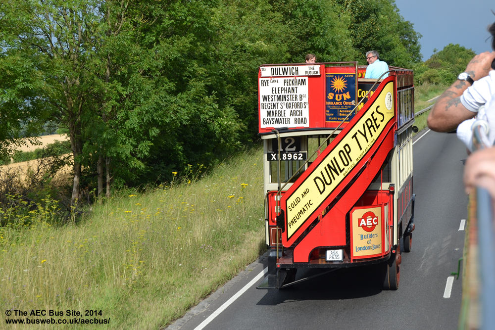 1922 AEC S-type XL 8962, new to London General as S454, is seen returning home over the A31 "Hogs Back" after a day out at the Alton rally in July 2014, one month after being acquired by a new owner for a cool £281,500.