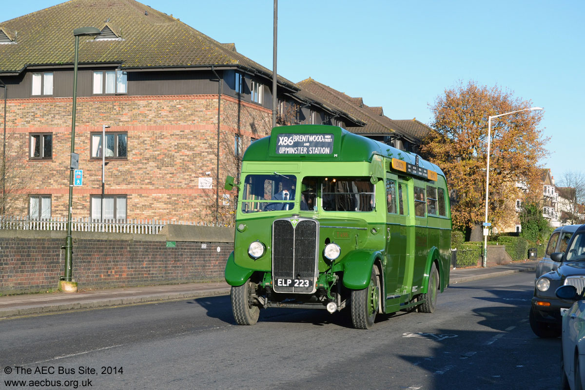 Regal revival. Preserved London Transport Mk I Regal T499 arrives at Upminster during the December 2014 Ensignbus running day. It had recently received a gleaming coat of LT coach livery after running in wartime grey the previous year.