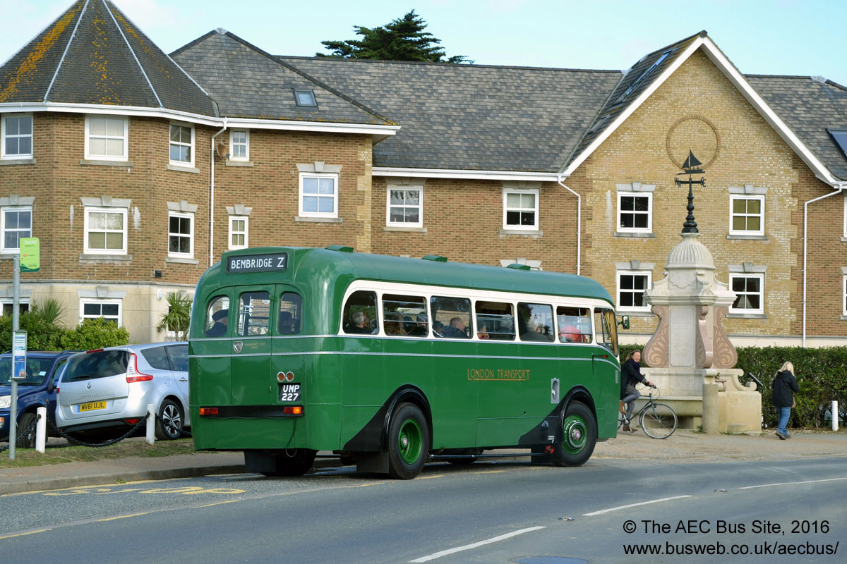 London Bus Museum's ex demonstrator AEC Regal IV, UMP 227, makes an appearance at Bembridge on the Isle of Wight during the 2016 annual Beer and Buses weekend.