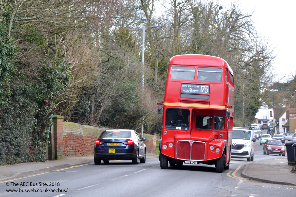 CRL4 (RMC4), the prototype AEC Routemaster coach, seen near Wake Arms near North Weald during an Epping Ongar Railway bus running day in Feburary 2022. |