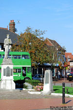 RML2456 rounds the war memorial at Chesham Broadway during the 2011 Amersham running day, an event blessed by an exceptionally warm October day.