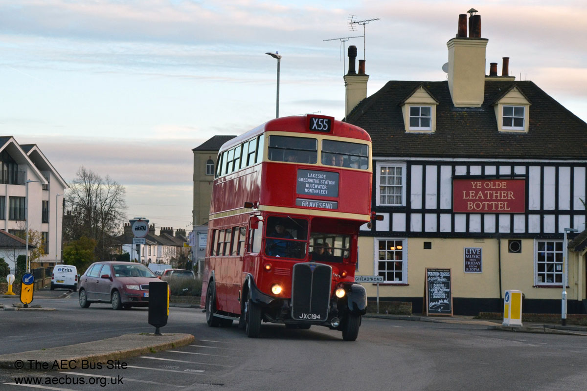 Ensignbus ex LT Regent III RT1431 takes the corner by The Old Leather Bottle in Northfleet village during Ensign's annual vintage running day in December 2017. |