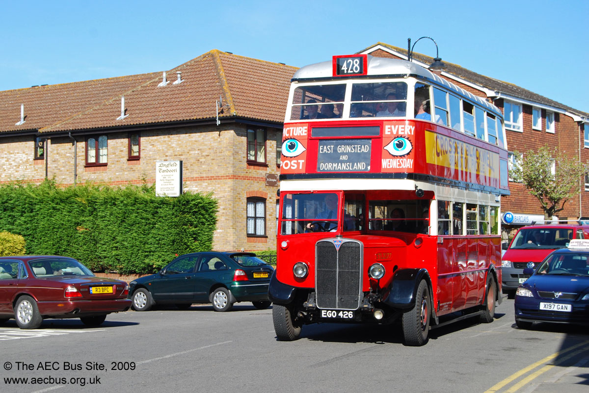 London Bus Museum's pre-war AEC Regent STL2377 trundles through Lingfield on its return journey to East Grinstead in April 2009.