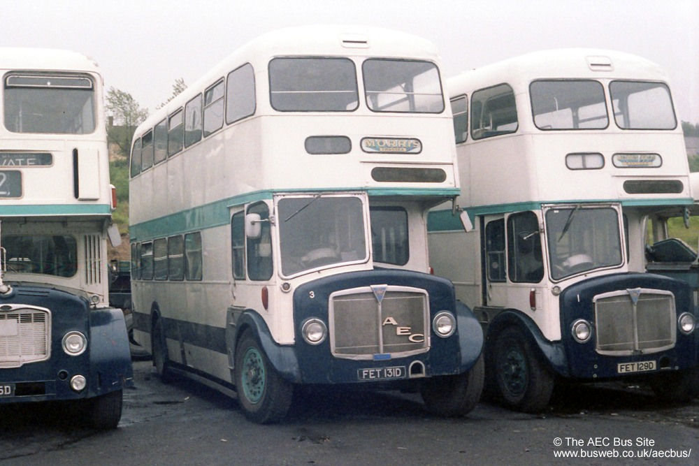 Morris Brothers of Swansea, once a large operator of contract services in the area, had this pair of Neepsend bodied AEC Regent Vs in their fleet. They were new to Rotherham Corporation, later passing to South Yorkshire PTE before being sold initially to an operator in Scotland before passing to the South Wales operator. They were pictured at the company's depot in June 1983. |