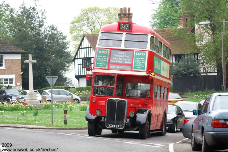 Ex London Transport Regent III RT3062 can still be found on the road, as it is fully PSV licensed with Roger Wright's London Bus Company. Along with other RTs in the fleet, it is generally confined to special duties and running days, such as when pictured at Warley village on an RT running day in April 2009. |