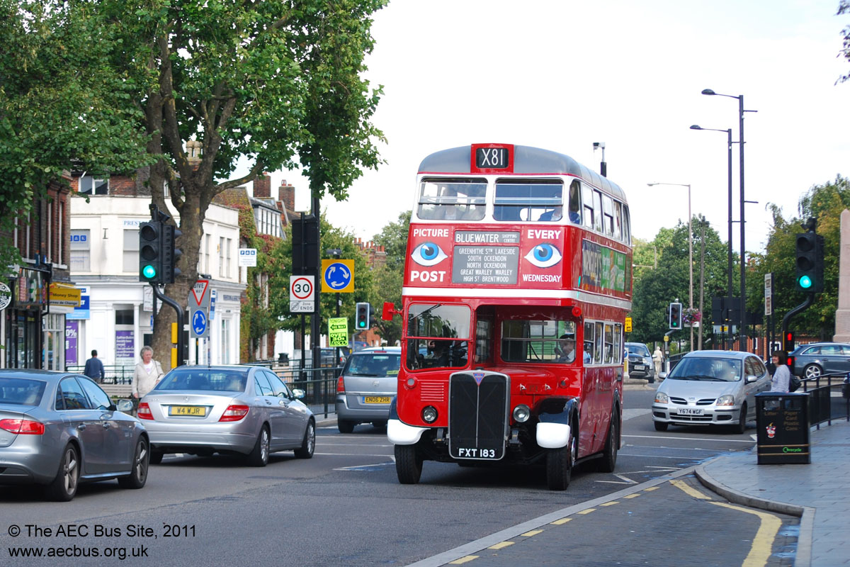 The oldest operational RT in the Ensignbus fleet is 1939 built RT8, seen at Brentwood in August 2011 on one of the company's heritage running days. These events still take place on the first Saturday of December each year. |