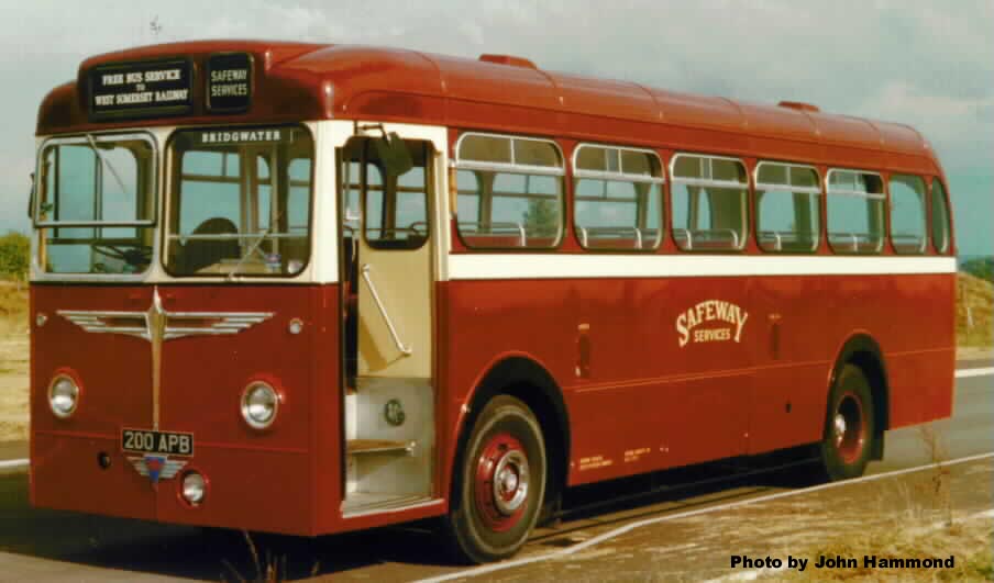 200 APB was new to Safeguard of Guildford and passed to Safeway Motor Services in 1962. It then passed into preservation and was used by Rexquote Heritage on the summer Taunton Deane Heritage Bus Service, still in its Safeway livery. It was photographed at work in the 1999 season. This bus has now been repurchased by the Newman family, proprietors of Safeguard Coaches, who have restored it for use at special events and rally appearences. More pictures of this bus can be found on the Before and After page.