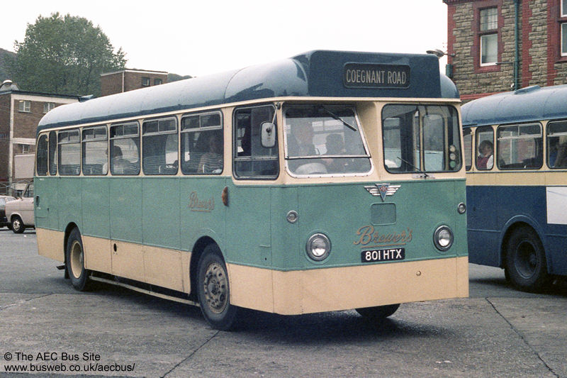 Independent Brewers of Maesteg ran a number of AEC Reliances alongside other types on their high frequency route between Caerau and Maesteg, and on Maesteg local routes. 22 year old Weymann bodied 801 HTX was seen in Maesteg in October 1982. When South Wales took over the Brewers company they applied the Brewers name to all of their eastern operations including routes out of the former National Welsh depot in Bridgend. Now the name had disappeared altogther, replaced by the corporate First brand. |